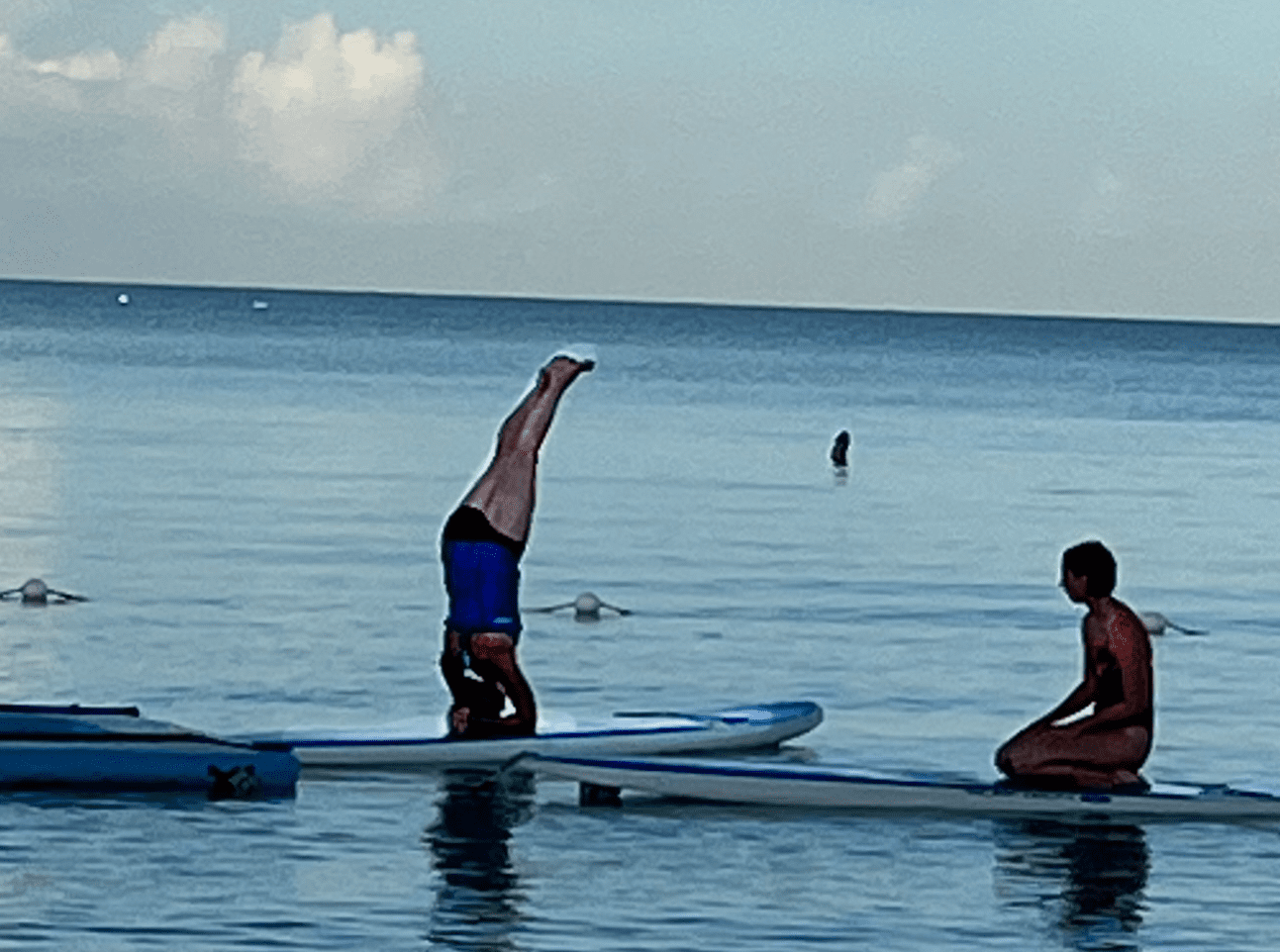 I promised to get some pics up of me and Emily trying SUP yoga during my vacation in Grand Cayman. Here they are! We went out very early in the morning in the hopes of having relatively calm water. There was a torrential downpour, a beautiful double rainbow, and I did a lot of falling into the water. The trip was amazing. We swam with turtles and stingrays, cleaned out blue iguana enclosures at the Blue Iguana Conservation facility, wandered through the botanical garden, had some wonderful meals and most importantly enjoyed the company. I loved spending time with the Hardman family and am so grateful to have such dear friends in my life.